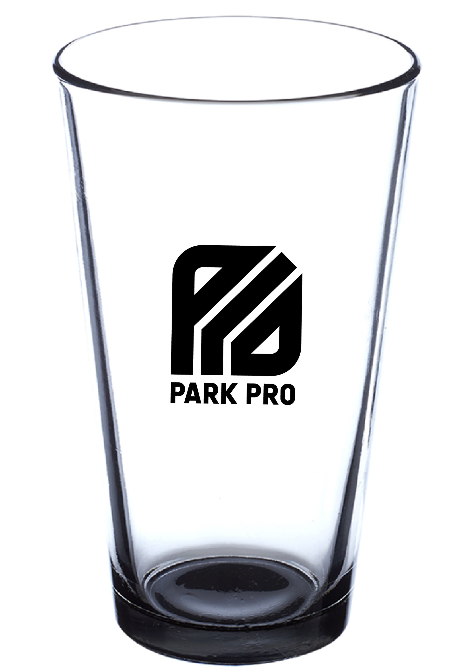 This 16-oz pint glass features the ParkPro logo and a color-faded base.